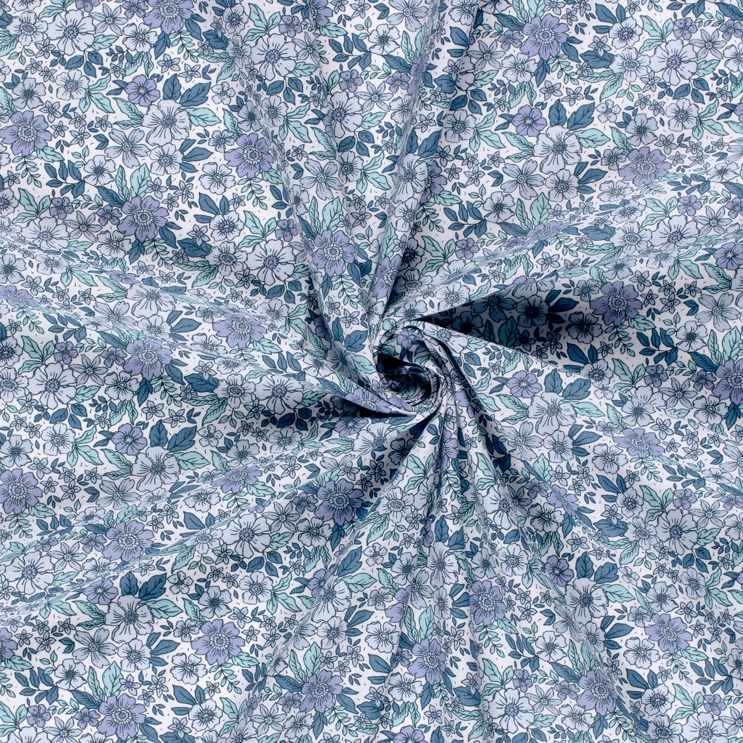Cotton Poplin Printed Flowers Cobalt